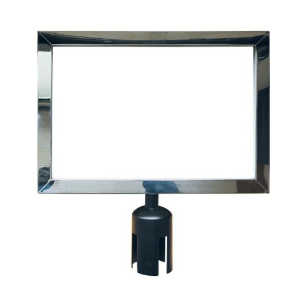 Panneau indicateur A4 horizontal chromé pour potelets à sangle