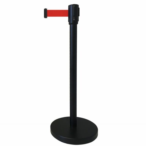 Potelet à sangle et enrouleur Noir, en métal à tête amovible H. 91 cm