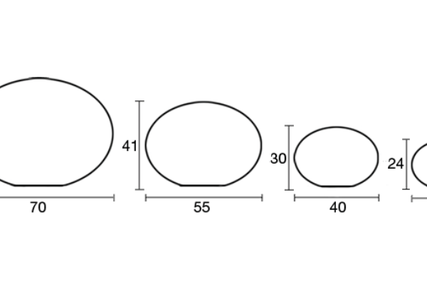• Dimensions : Ø32 x H24cm ; Ø40 x H30cm ; Ø55 x H41cm  ; Ø70 x H52cm