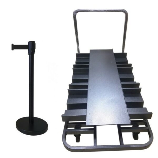 Pack 18 potelets à sangle et enrouleur en métal chromé H. 91 cm + chariot
