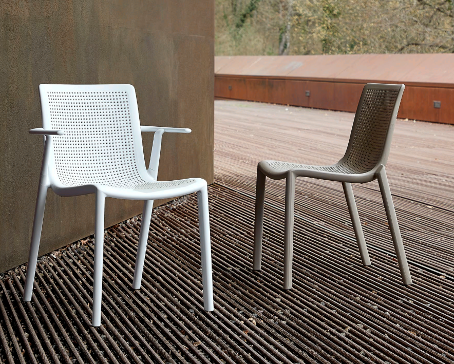 Chaise d’intérieur et extérieur. Injectée avec fibre de verre et PP