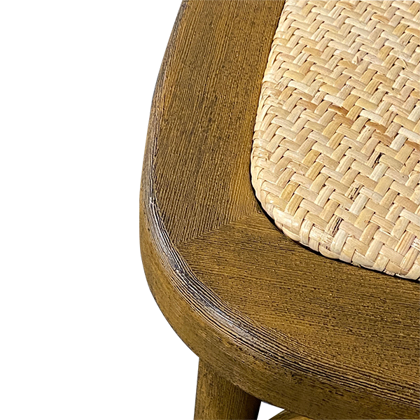 Elle est composée de pieds évasés sur lesquels repose une assise aux bords arrondis. Des barreaux de renforts viennent rajouter une touche d’élégance supplémentaire. Le dossier possède deux lattes qui s’entrecroisent pour accueillir confortablement son hôte.