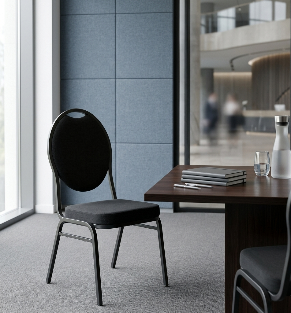 Chaise empilable, structure en acier, assise en tissu AM18.