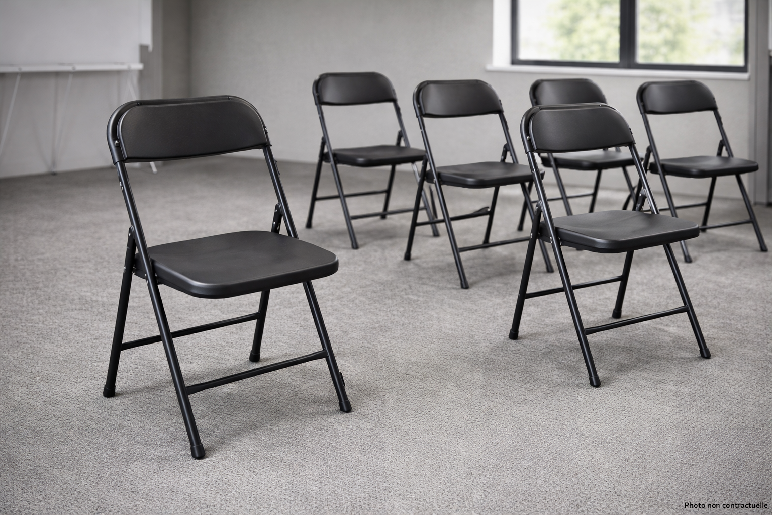 Cette chaise pliante plastique est aussi empilable ! C'est la plus simple et la plus complète du marché. Vous empilez sans aucune difficulté 50 chaises sur 1m50 de hauteur.