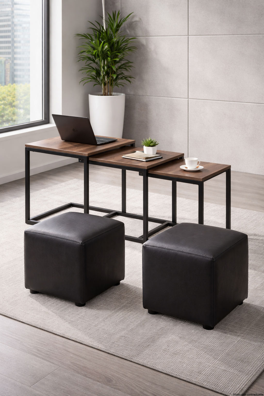 Tables basses pour intérieur, structure acier et plateau bois MDF. Une association de matière qui donnera un style contemporain à tous vous espaces..