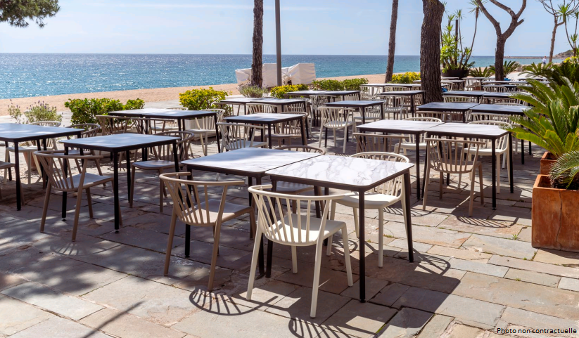 C’est la chaise empilable à accoudoirs idéale pour les bars, les bistrots, les restaurants, les snacks, les cafeterias, toutes les terrasses accueillant du public dont les piscines, les campings…