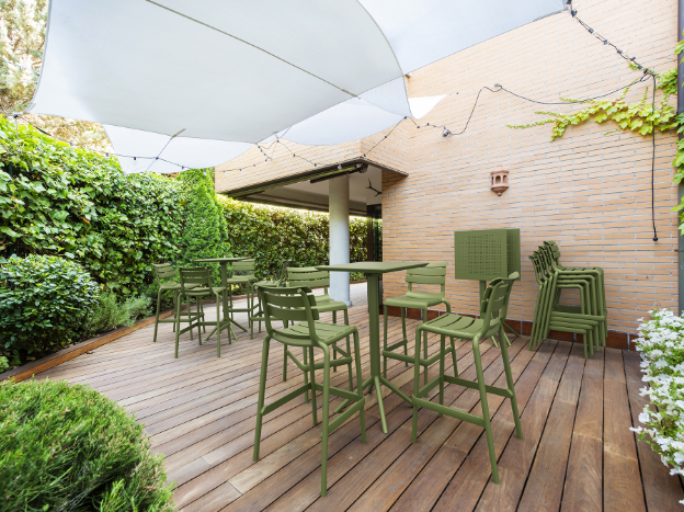 Table au design épuré et contemporain pour extérieurs et terrasses.