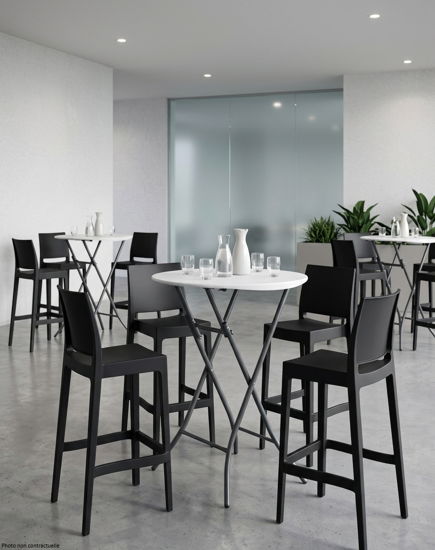 Le mange-debout pliant Ø84 cm est la solution parfaite pour tous vos événements professionnels ou privés.