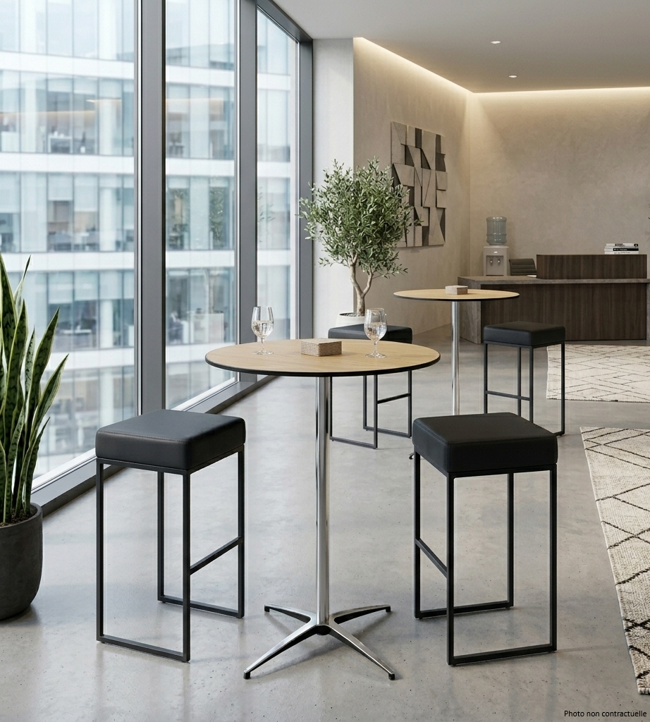 Le mange-debout carré en bois RAPIDO est une autre spécialité de VIF. Grâce au procédé simple d’emmanchement conique, il est facile et rapide de monter le plateau et la base du mange-debout… sans outil, sans visserie, sans efforts. Autres dimensions disponibles, nous consulter.