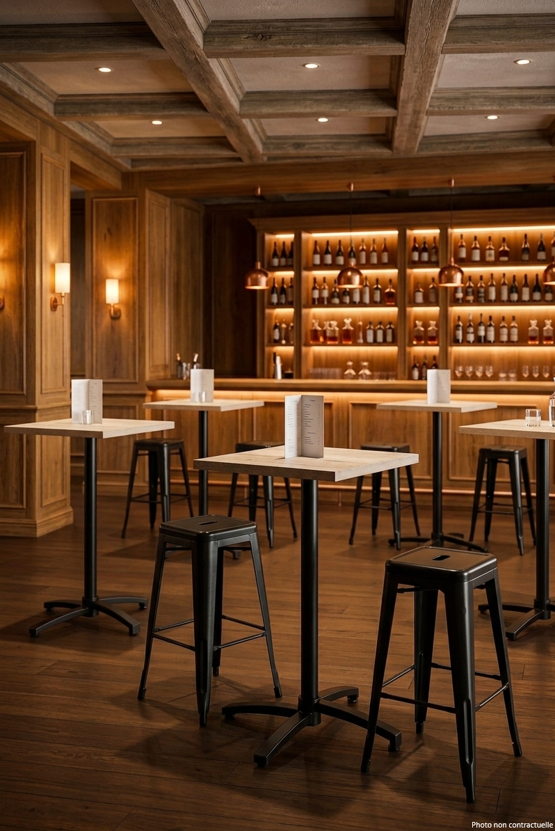 VIF présente son mange-debout MINORQUE à associer avec nos plateaux et stratifié imitation chêne.