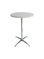 PACK 17 mange-debout pliants HDPE + housses blanches + chariot de transport