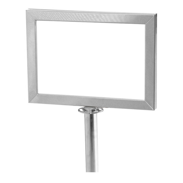 Panneau horizontal A4 à visser sur les potelets guide-file chromé et tube acrylique. Ce panneau indicateur est constitué d’un cadre chromé dans lequel se glissent deux panneaux en plexiglas.