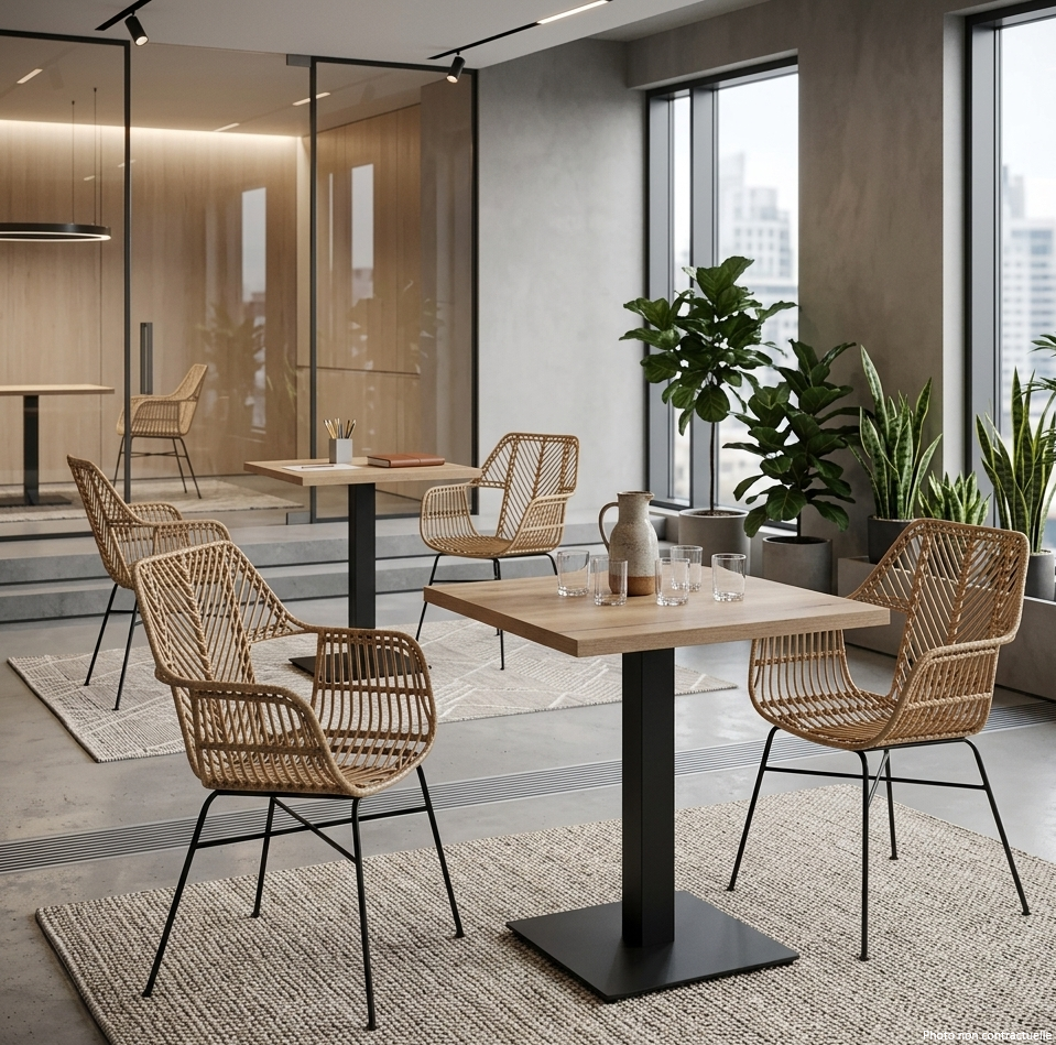 VIF présente sa table PEDROSA à associer avec nos plateaux stratifié imitation chêne.