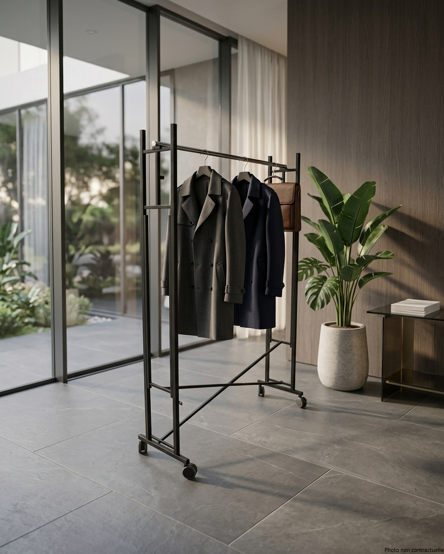 Un vestiaire se déployant en quelques secondes ! Portant professionnel pliant sur roulettes pour suspendre 15 à 30 cintres.