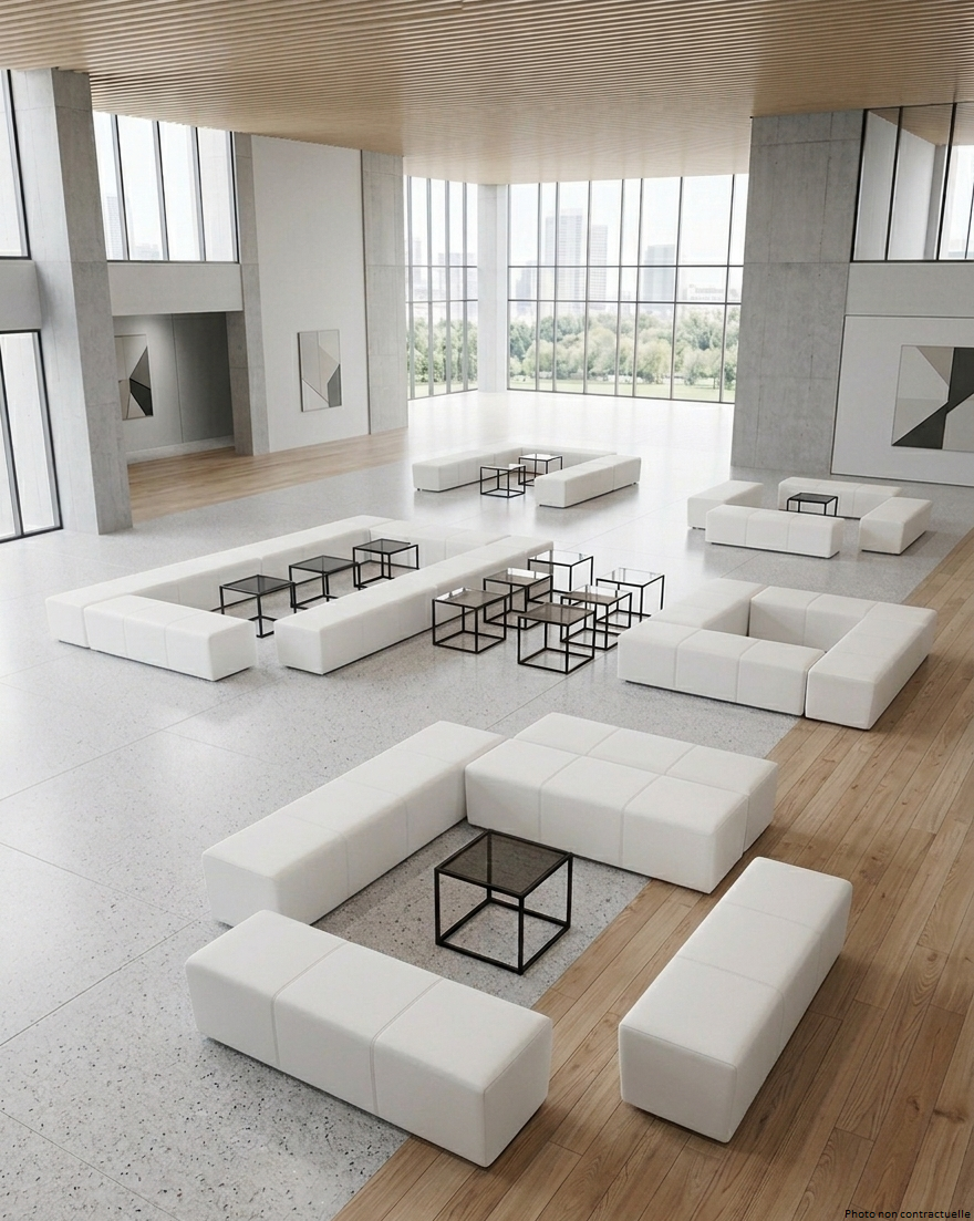 Cette banquette sera parfaite pour créer des ambiances lounges. Idéale pour des espaces de réception et d’exposition, cette assise est régulièrement louée dans le cadre de conférences, salons, réunions, meetings, conférences de presse…