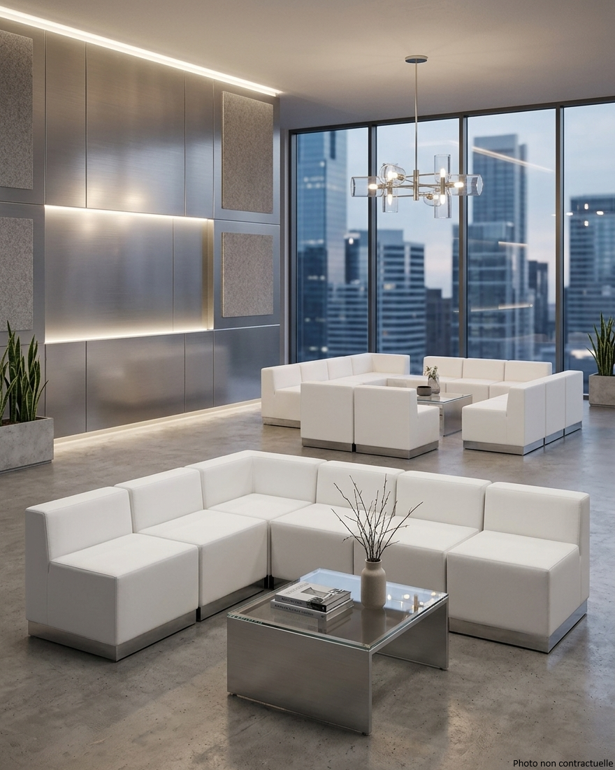 Ce pouf a dossier en simili cuir incurvé vers l’intérieur TRAPÈZE EXT blanc est idéal pour les lieux d’accueil, les espaces nécessitant de s’asseoir. Il crée à la perfection des ambiances cocktail, lounge.