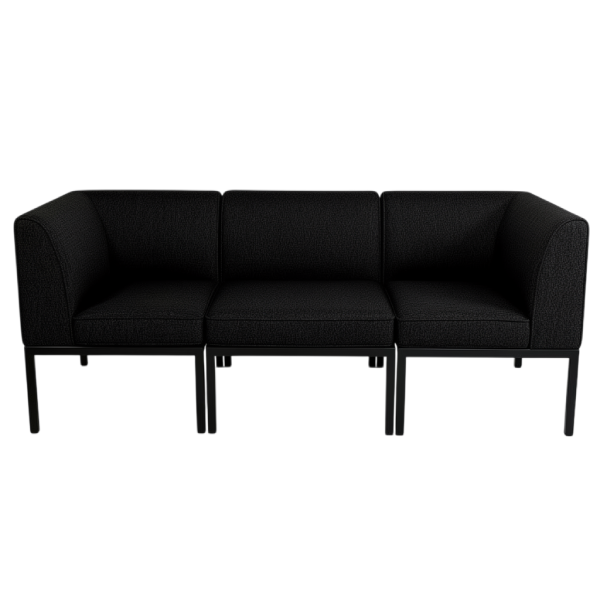 Pouf d’angle modulable avec dossier structure acier noir assise tissu noir, NOA