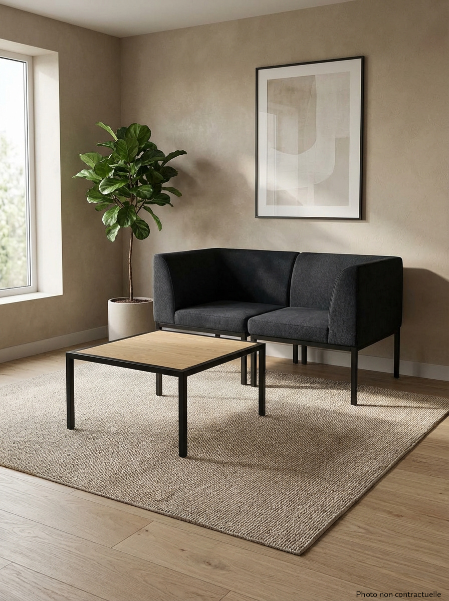 Table basse carrée plateau bois, pieds métal, NEW TOWN