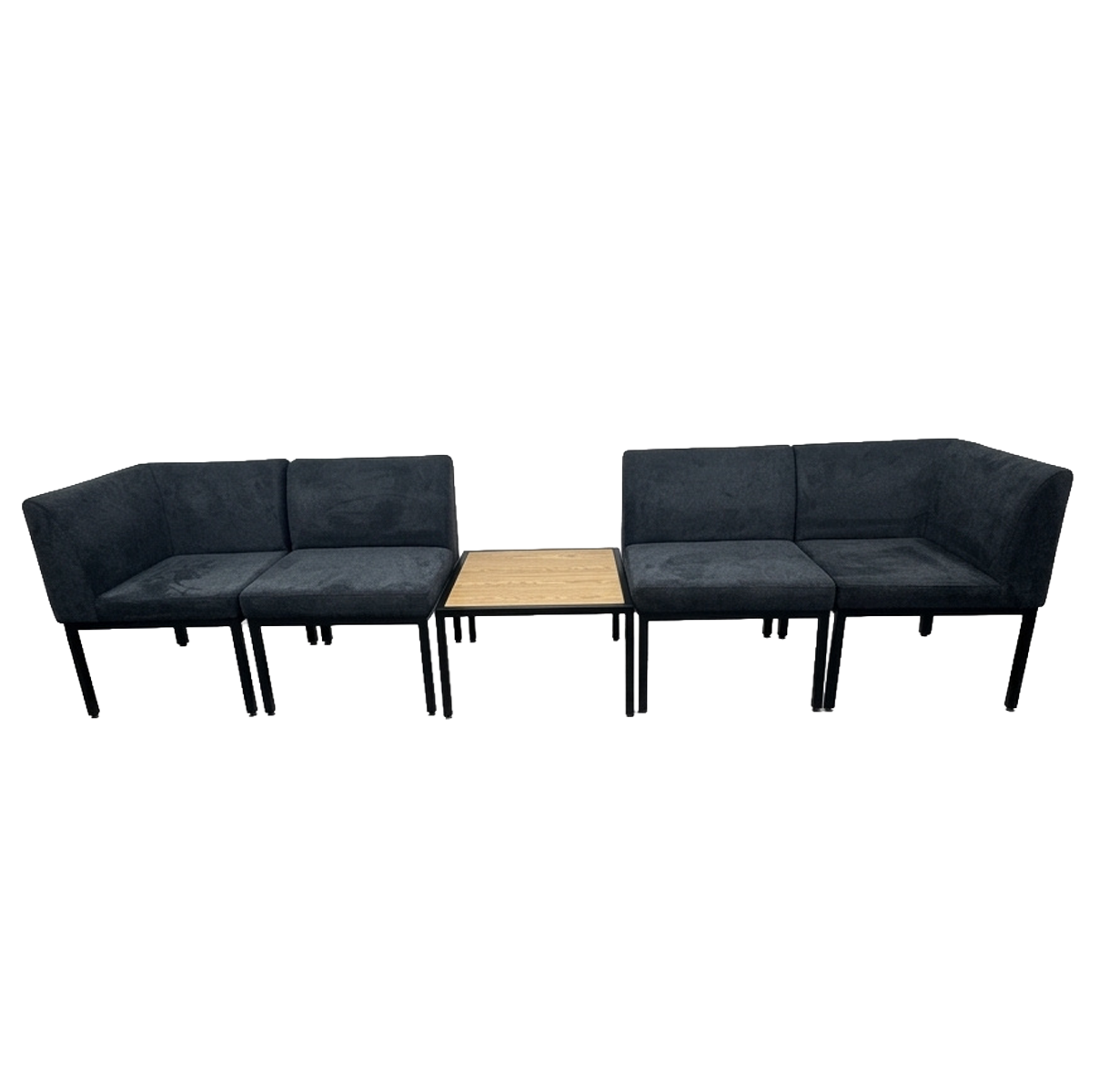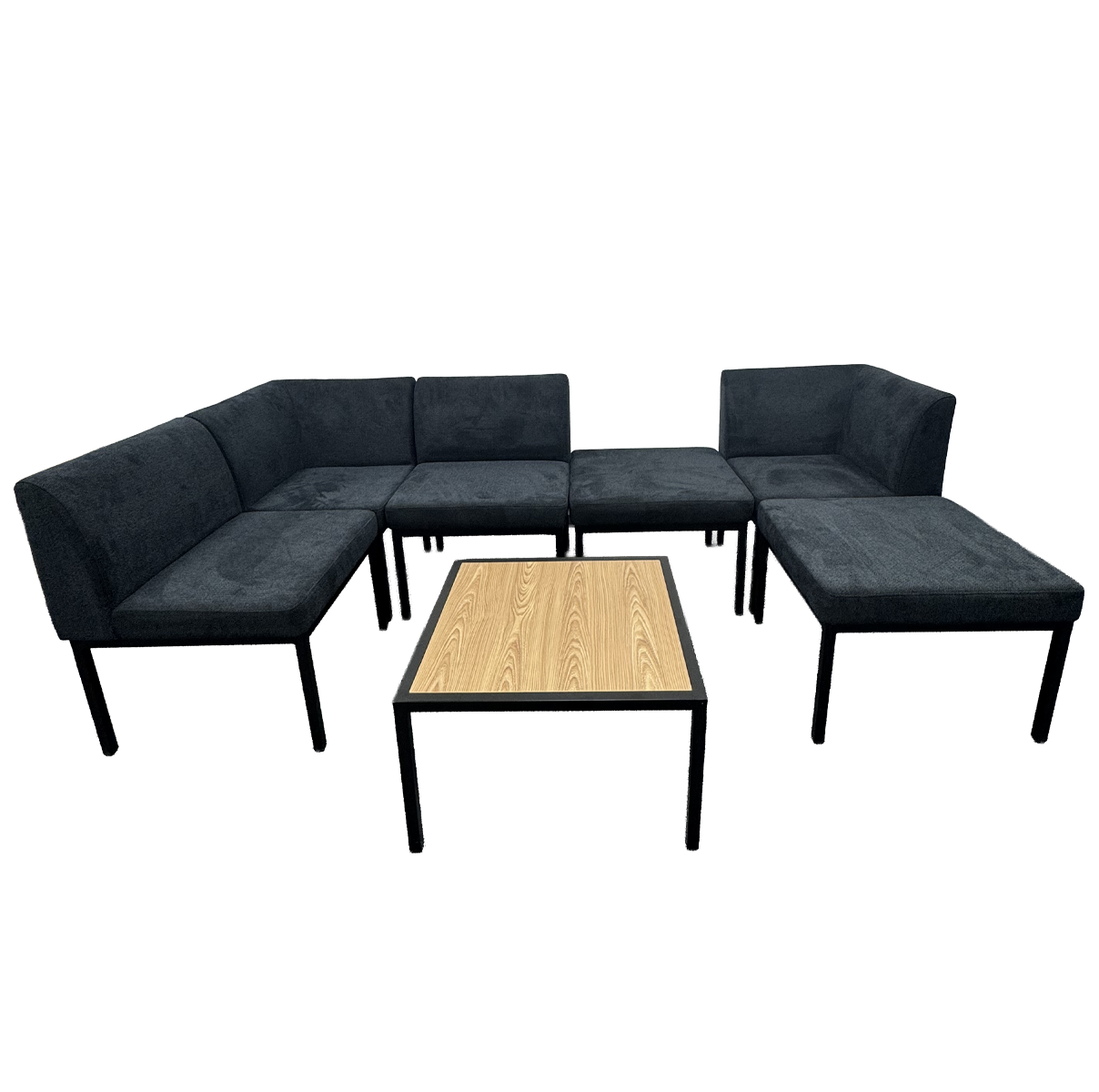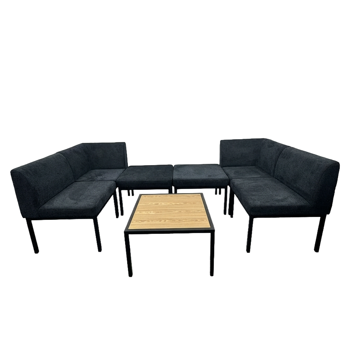 Pouf d’angle modulable avec dossier structure acier noir assise tissu noir, NOA