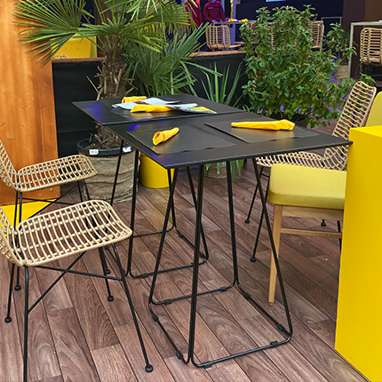 La table PARIS, a la structure filaire métallique mais légère. De forme trapézoïdale il a une allure minimaliste et très design.