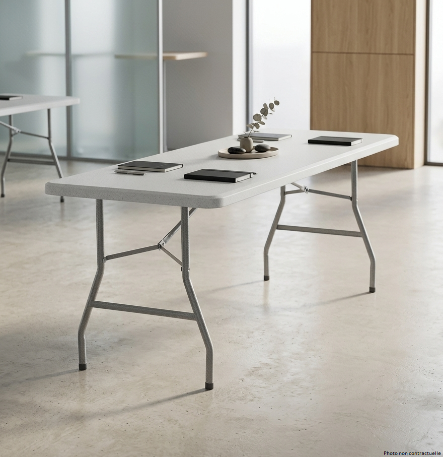 Table pliante en Polyéthylène Haute Densité – HPDE au piètement pliant, pour usage professionnel.