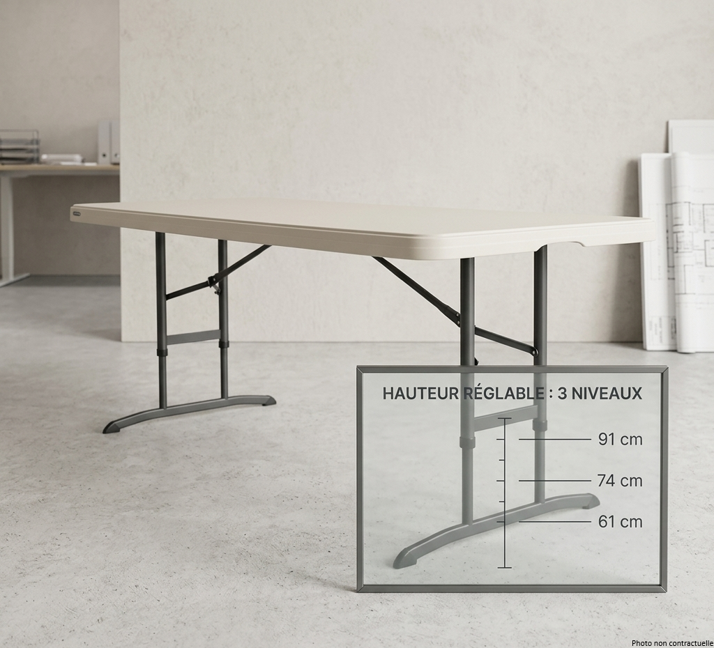 Table pliante rectangulaire en polyéthylène haute densité 183x76cm – Hauteur réglable H61/74/91 CM BEIGE