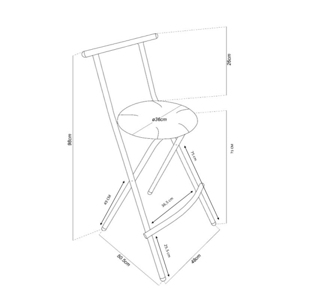 • Épaisseur assise : 3cm / Dimensions assise : ø 36cm / Hauteur d’assise : 71cm
